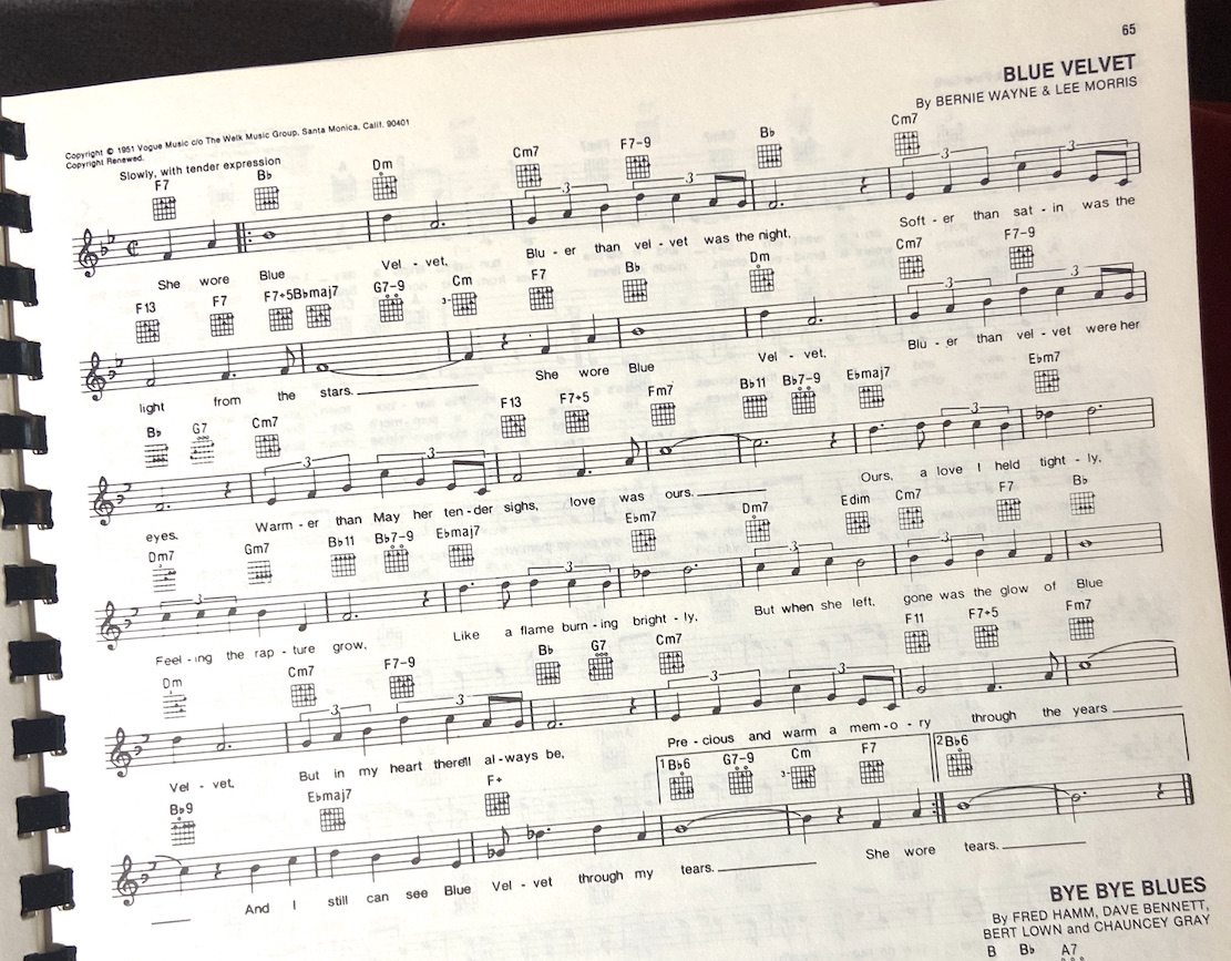 She wore [G] Blue [Bm7] Velvet [Bm7] [Bbm7] (run down)