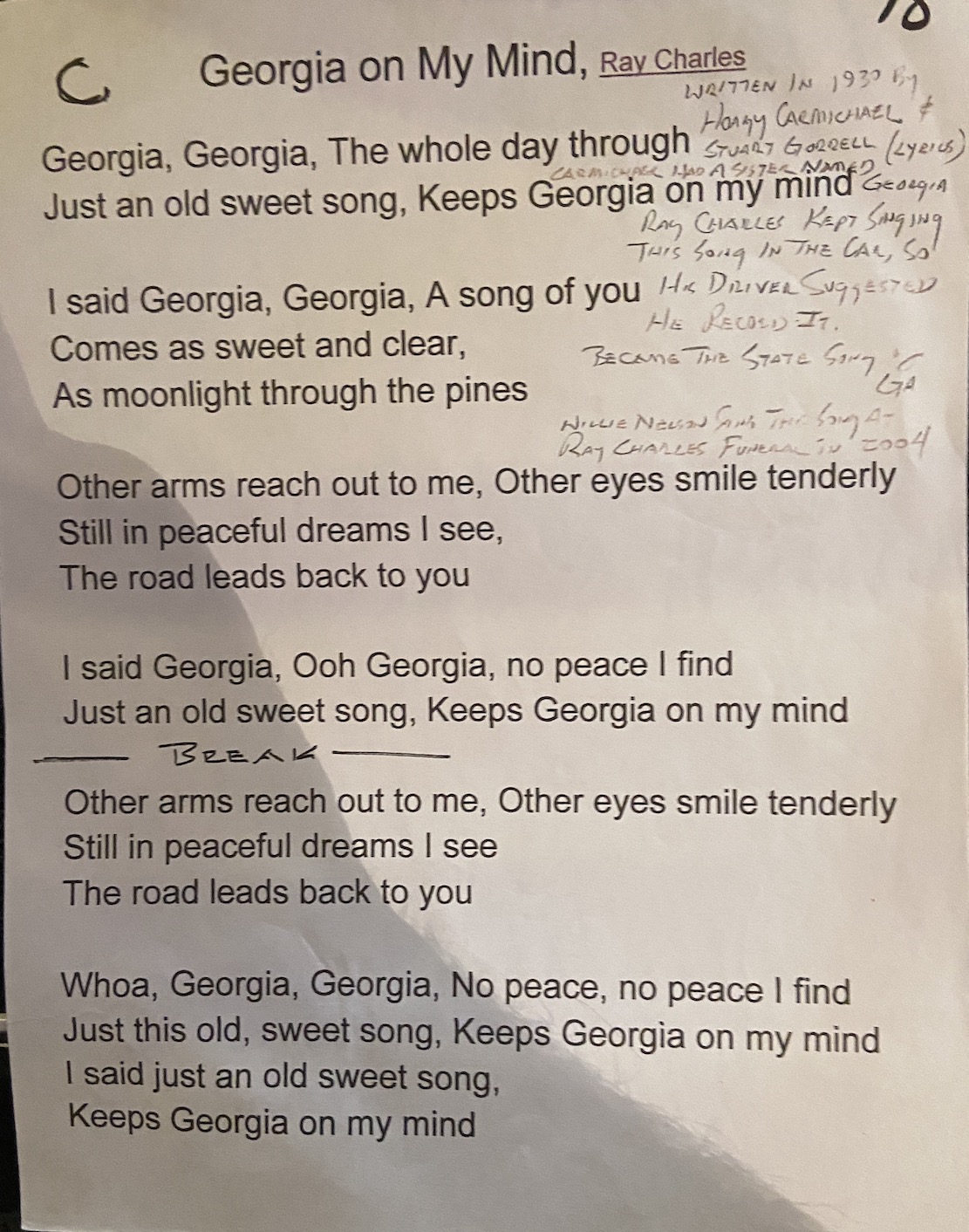 Just an old sweet song, Keeps Georgia on my mind