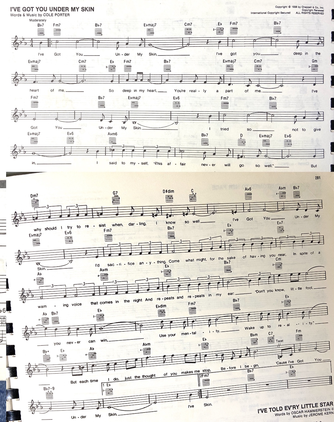 Words are different than Sinatra used in several places. “So deep in my heart that you’re really a part of me” “I said to myself, This affair never will go so well” “But why should I try to resist, when Baby I know so well” “And repeats and repeats in my ear” “But each time that I do, just the thought of you” Instrumental Last verse “I would sacrifice anything, come what Might For the sake of having you near In spite of a warning voice that comes in the night And repeats how it yells in my ear Donβt you know little fool, you never can win Why not use your mentality, Step up ,wake up to reality But each time I do, just the thought of you Makes me stop just before I begin βcause Iβve got you, under my skin Yes Iβve got you under my skin