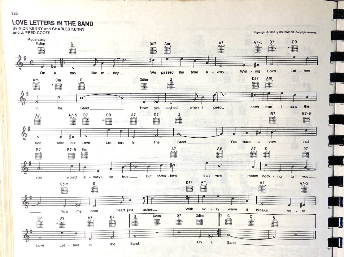Now my [C] broken heart [C7] aches with [F] every wave that [D] breaks over [G] love letters [G7] in the [C] sand.