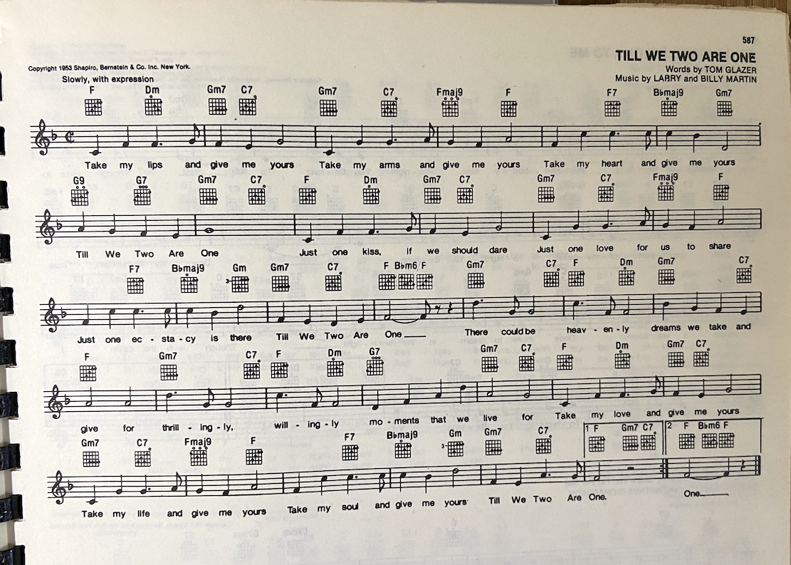 “Till We Two Are One” (popularized by Ernest Tubb) features simple, classic chord changes, often in C or F, with common progressions like F-Dm-Gm7-C7 or C-Am-Dm7-G7 for the verses, leading to a sweet chorus using chords like