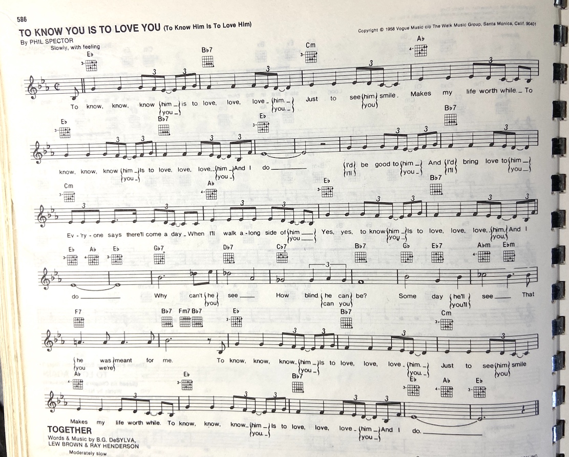 Christers - To Know You Is To Love You Tabbed by: http://www.andreasvockrodt.de [Intro] G# C F C F [Verse] F C To know know know you is to love love love you Dm A# just to see you smile makes my life worthwhile F C To know know know you is to love love love you F A# F and I do and I do yes I do. [Verse 2] F C I'll be good to you and I'll bring love to you, Dm Everyone says there'll come a day when A# I'll walk alongside of you F C To know know know you is to love love love you F A# F and I do and I do yes I do. [Bridge] G# D# C# C Why can't you see how blind can you be? G# Adim A#m Fm G C Someday you'll see that you were meant for me. [Verse 3] F C To know know know you is to love love love you Dm A# just to see you smile makes my life worthwhile F C To know know know you is to love love love you F A# F and I do and I do yes I do.X