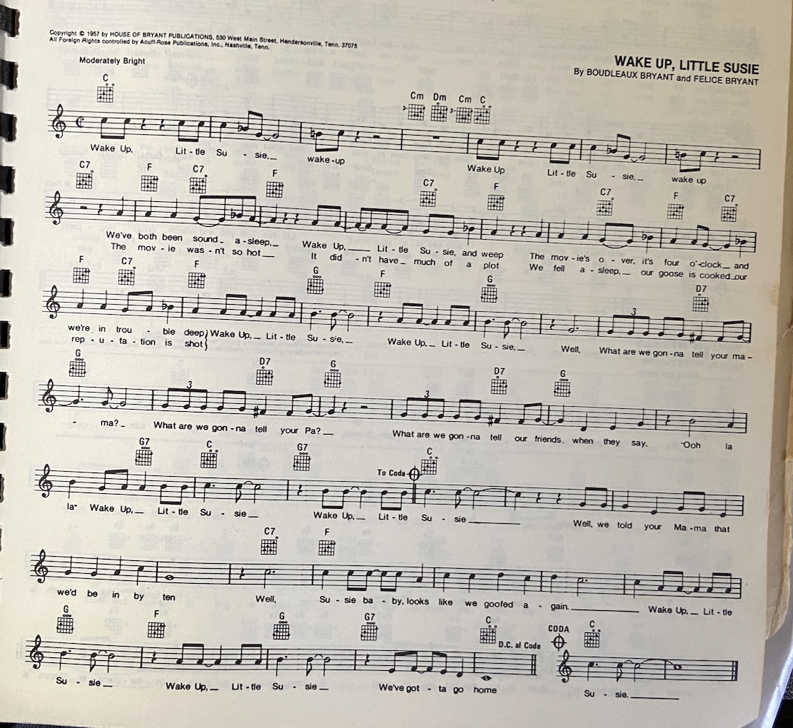 Wake up little [A7] Susie [G] wake up little [A] Susie w-[A7]-ell