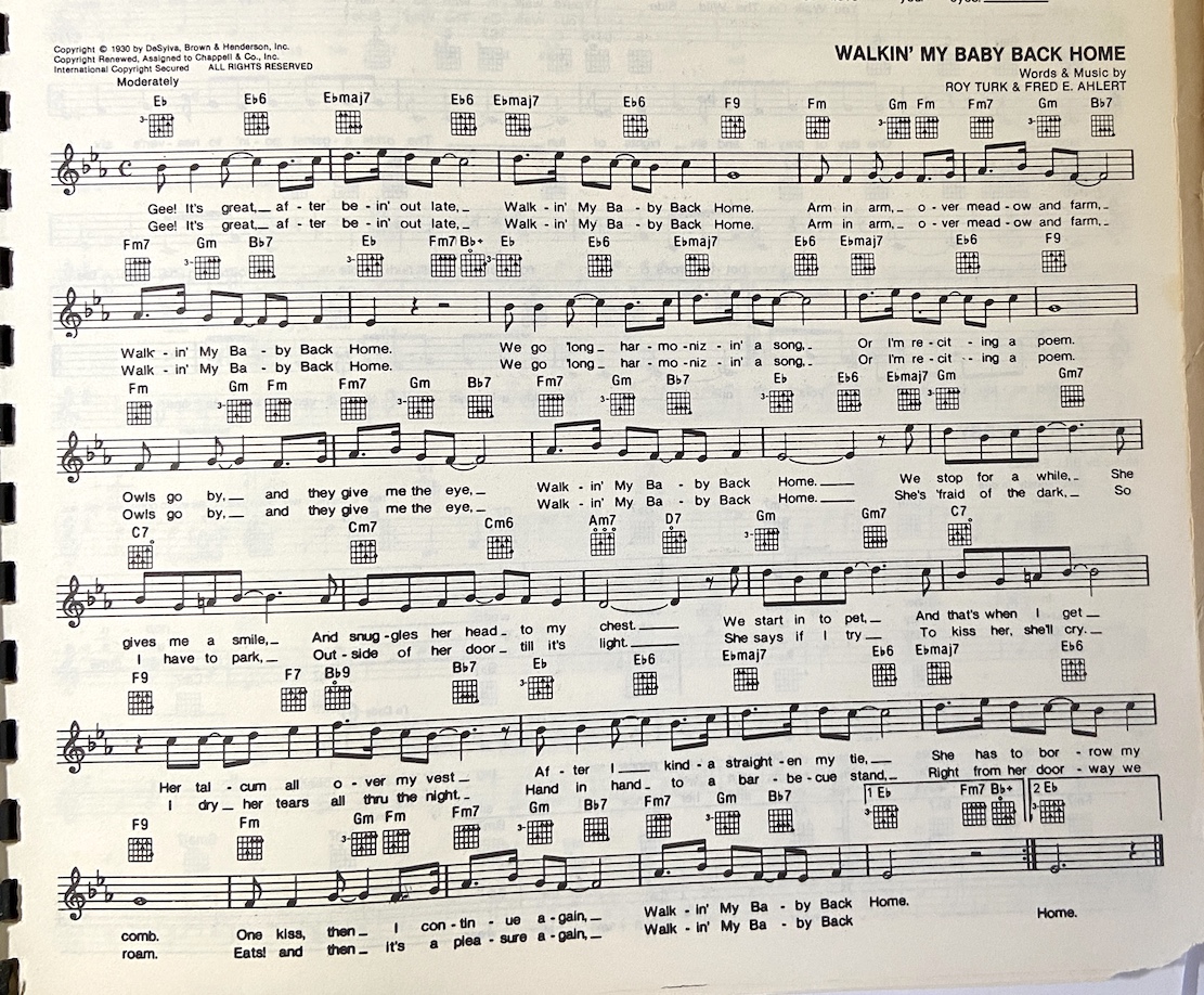 [C] Walking my [Am] baby back [Bb] home [A]