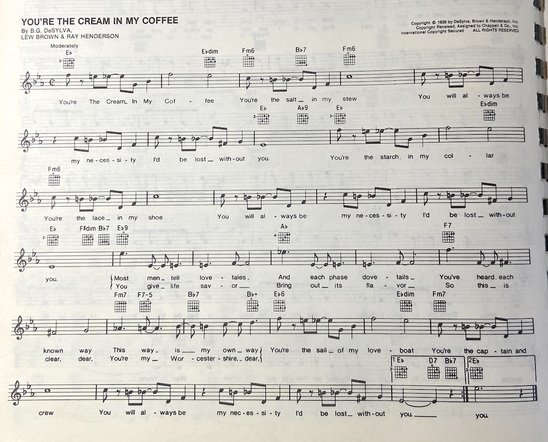 (A7)So this is clear, dear, (D7)you’re my Worcestershire, dear!